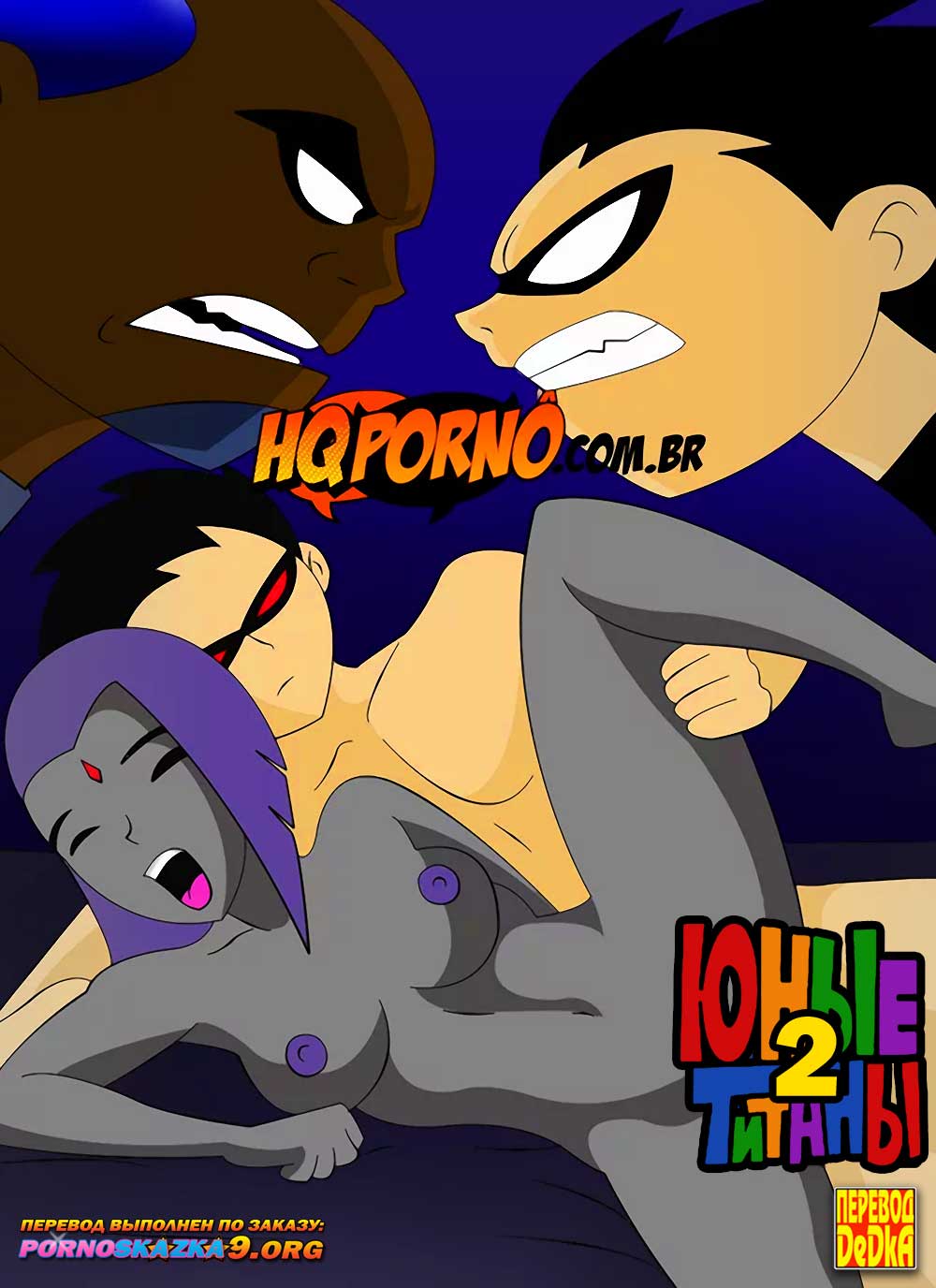 Порно комикс «Юные Титаны. Часть 2. Магия Рэйвен.» Киборг, Старфаер и Мутант вернулись в башню Титанов после битвы с очень сильным...